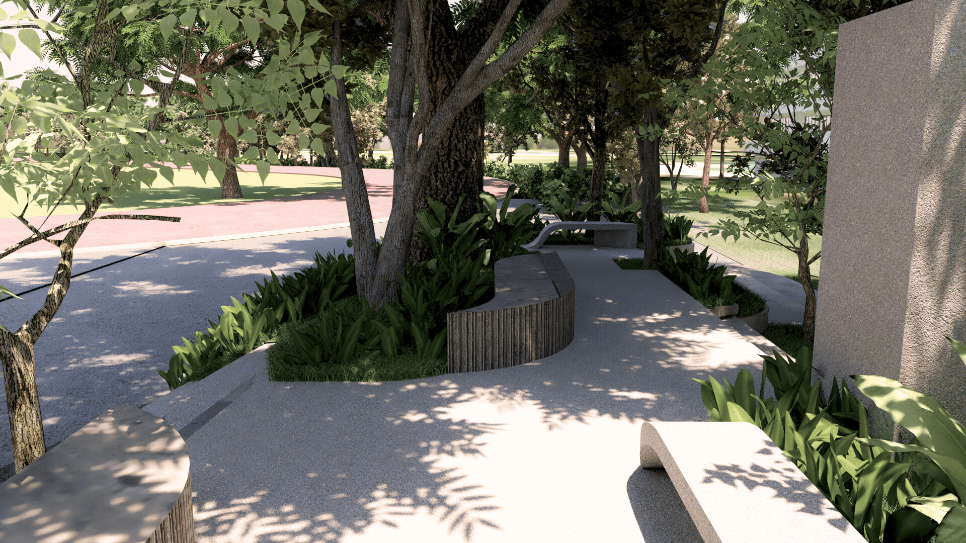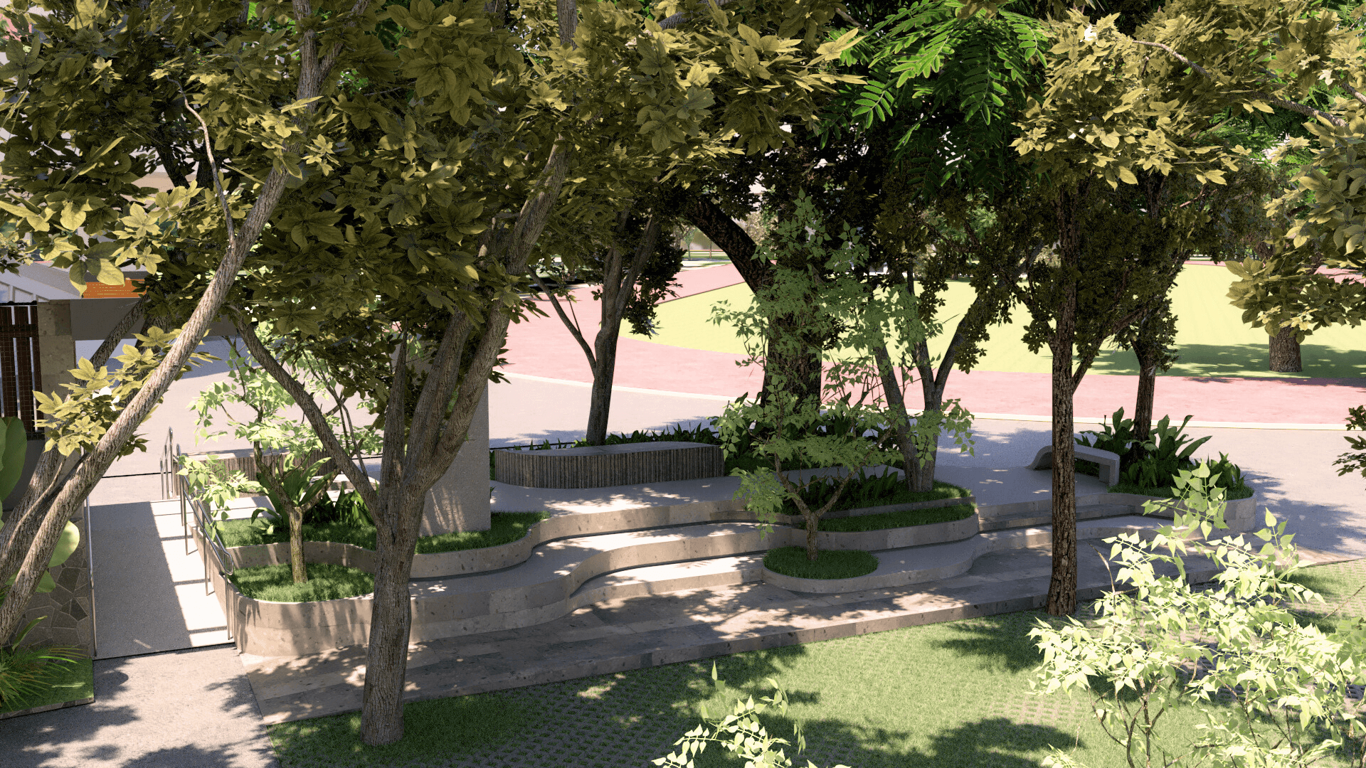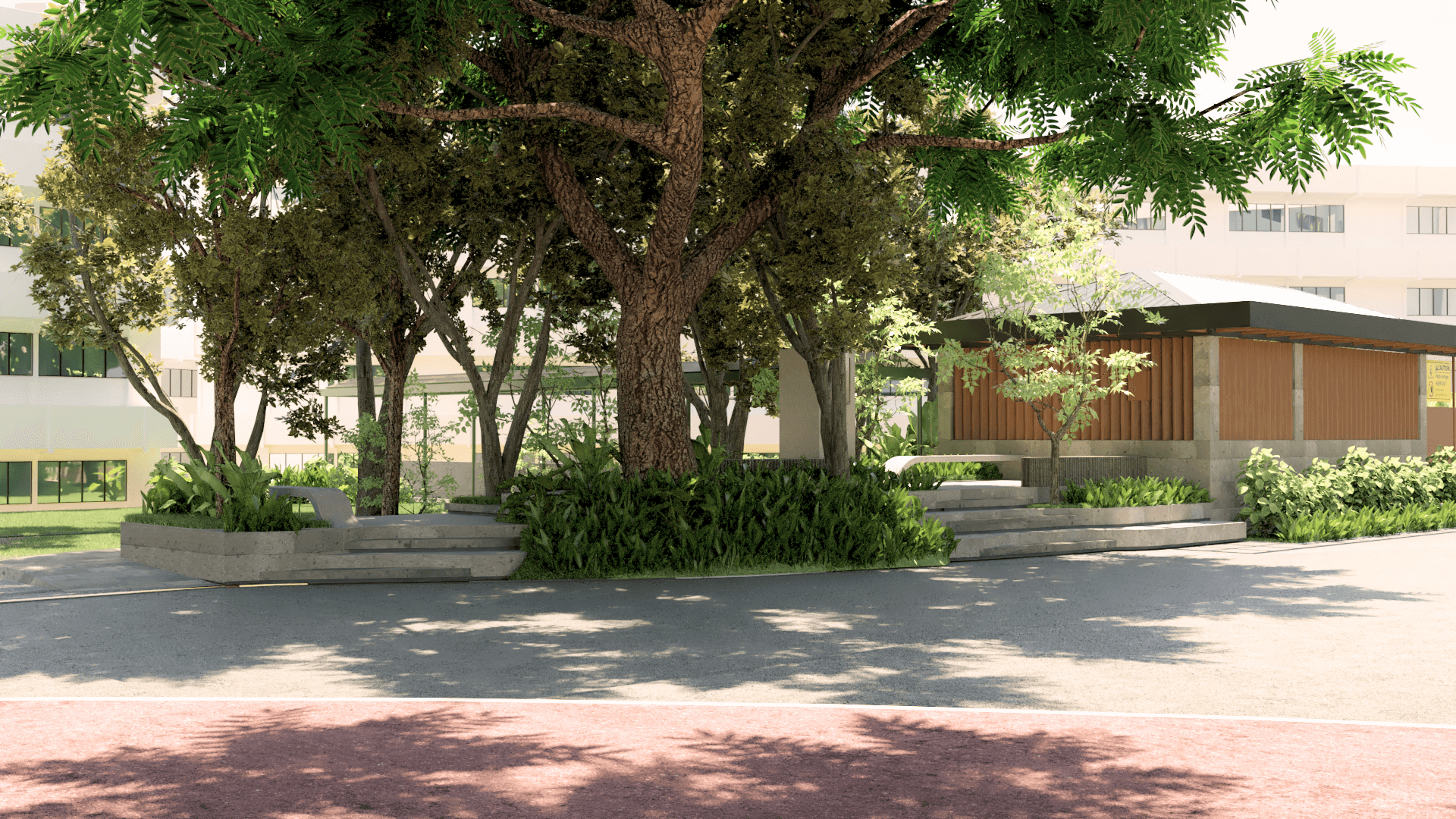 Nested within trees and light, this outdoor seating becomes a place to slow down, gather, and breathe.