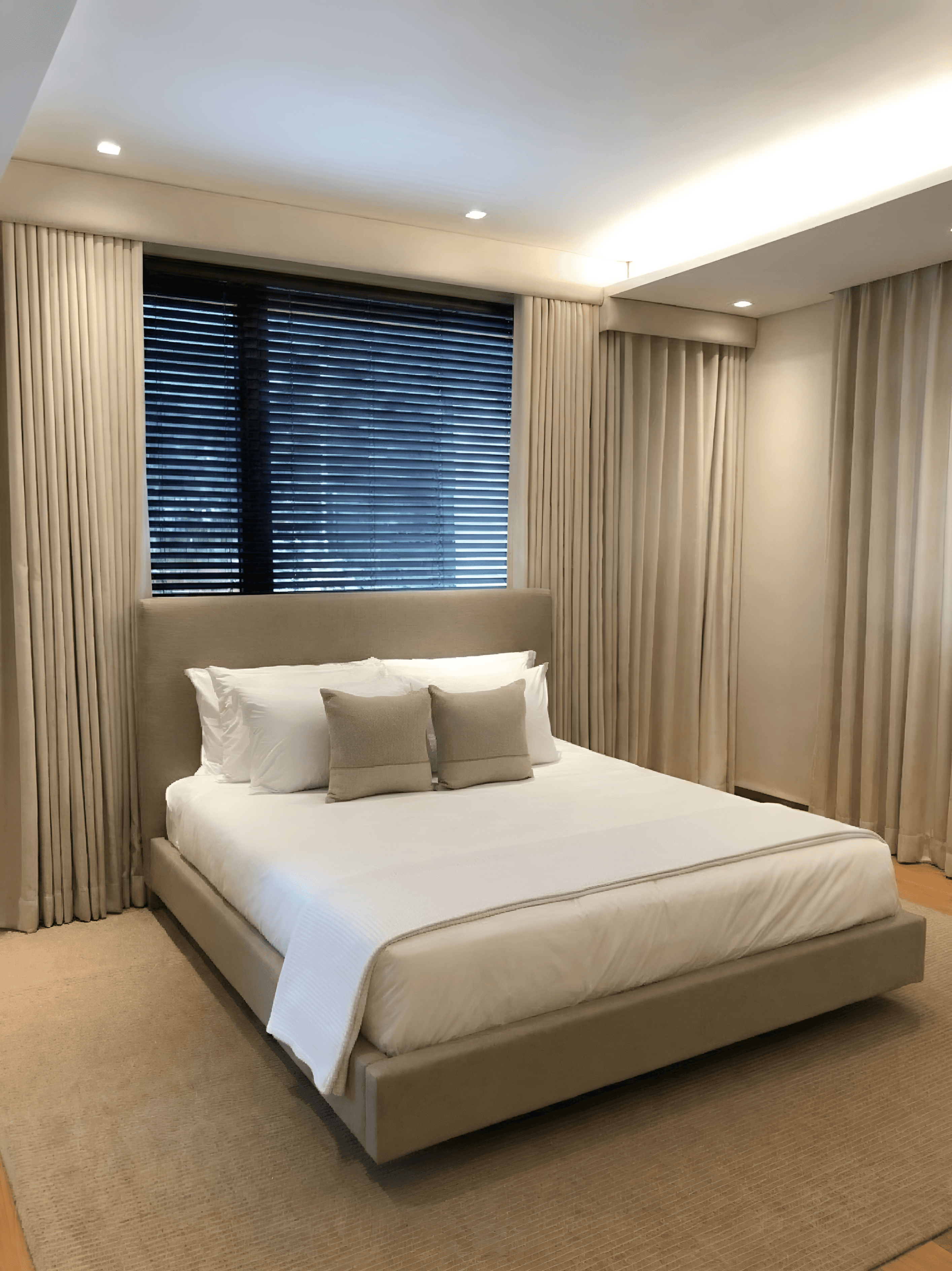 Soft light, layered materials, and controlled views create a retreat that feels both grounded and expansive.