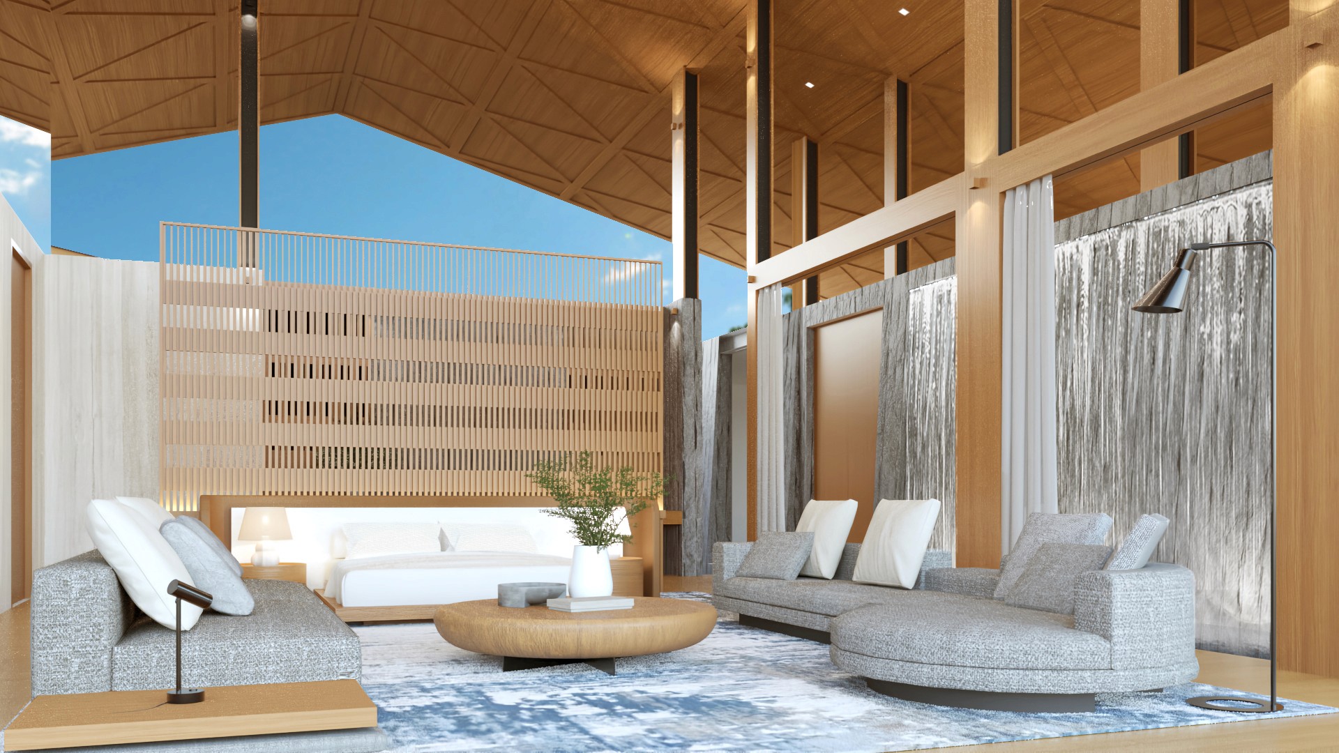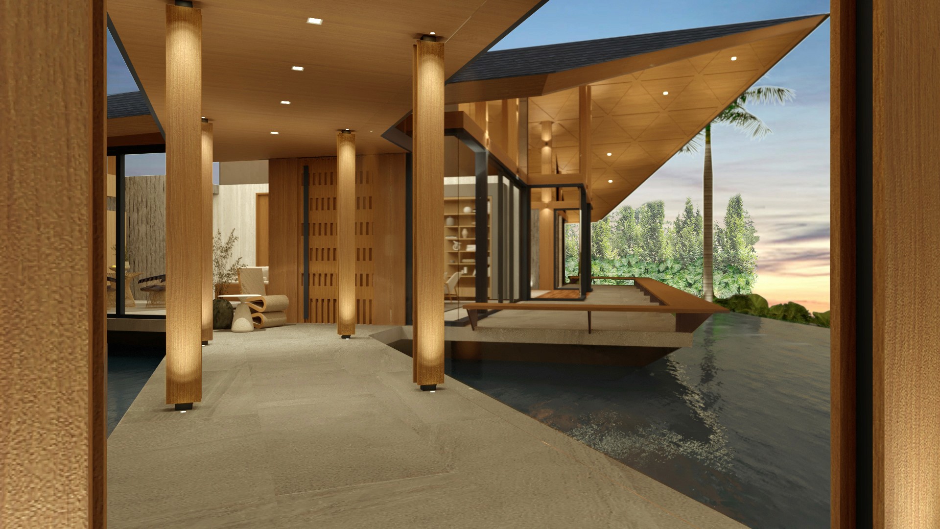A floating sanctuary, framed by water and sky